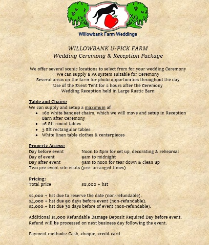 Special Price Offer for 2026 Weddings, booked before December 31st 2025. Limited number available at this price.